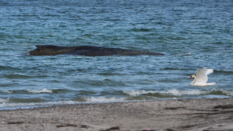 Nicht unterernährt, nicht abgemagert: Ein Buckelwal liegt auf einer Sandbank in der Ostsee. Er kommt nicht weiter. Die Chancen auf die Rettung des Tieres sind gut, sagt Carsten Manheimer von der Tierschutzorganisation Sea-Shepherd. Und erklärt die Details.